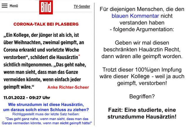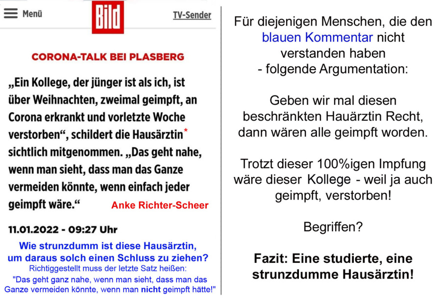 3. Kann es sein, dass ich der Anke Richter-Scheer Unrecht tue und sie ist nur eine naive, sysmenkonforme Ärztin, die für diesen Schwachsinn gut bezaht wird?